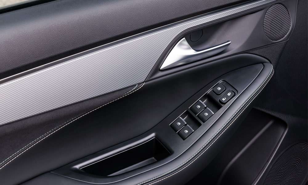 - Кожаная отделка сидений черного цвета с декоративной прострочкой, перфорацией и декоративными вставками
